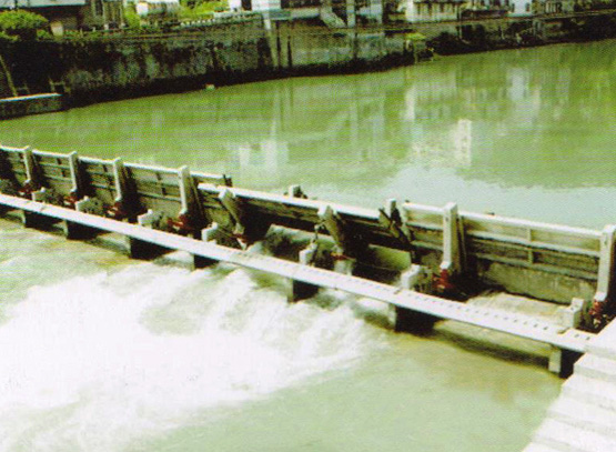 翻板坝分为水利自控或液压控制翻板的闸门坝,可根据实际情况选择水利自动控制或液压控制。水利自控时,当上游水位超过正常蓄水位时,随着水位的上升闸门在水力作用下自动逐步开启,水位越高,开启量越大,直至全开;当水逐渐流出,水位开始下降降至低于正常蓄水位时,闸门完全关闸。 液控双作用翻板闸门,是从水力自控翻板闸门发展而来,也就是在水力自控翻板闸门的基础上增设液压系统,克服水力自控翻板闸门的被动启闭方式,可以实行人工干预闸门的开启和关闭。